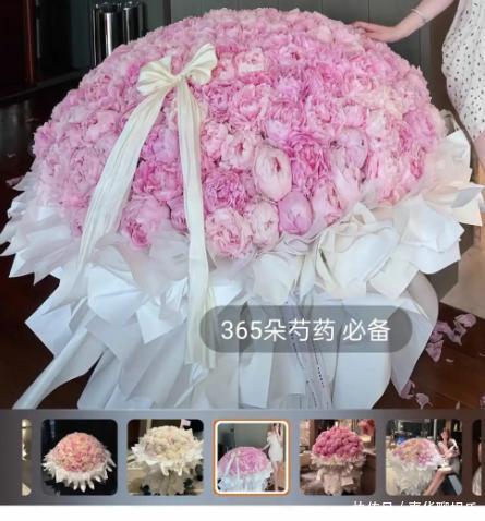 万元芍药花束,浪漫仪式感拉满何猷君今年送的花格外用心——一束由365朵芍药组成的巨型花束,宽度超过两人搂在一起的宽度,鲜花上点缀白色蝴蝶结,还附有印着奚梦瑶名字的贺卡。这束花网上售价约1.6万元,因恰逢妇女节,上海和香港价格更高,总价值上万元。旁边还有两束配色精致的鲜花,每束也要几百上千元。情绪价值这块,何猷君给得相当足。